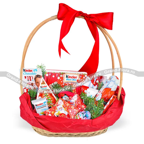 Новогодняя корзинка с киндер-сюрпризами — идеальный подарок для близких и друзей!
